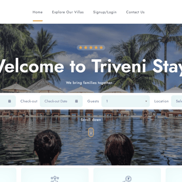 Triveni Stays partnered with us to create a dynamic online presence that would elevate their visibility in the hospitality sector and drive direct bookings. Our team designed a user-friendly website with integrated booking functionality, simplifying the reservation process for their guests and boosting convenience.